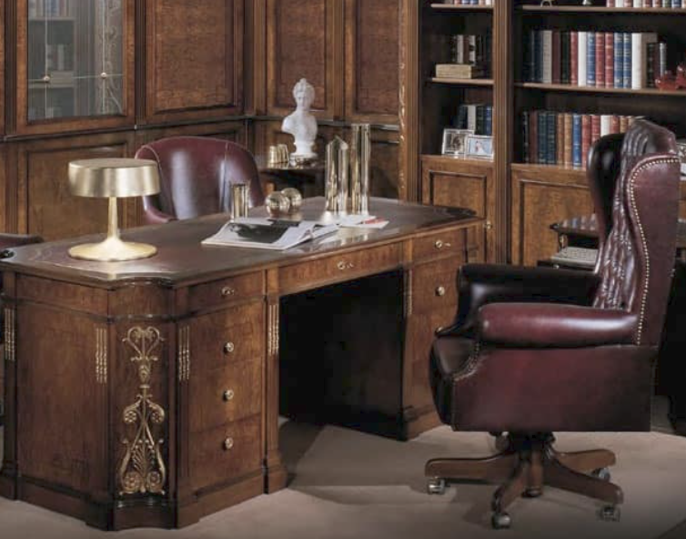 Modern luxury office furniture, L-shaped executive desk, wooden computer management desk
