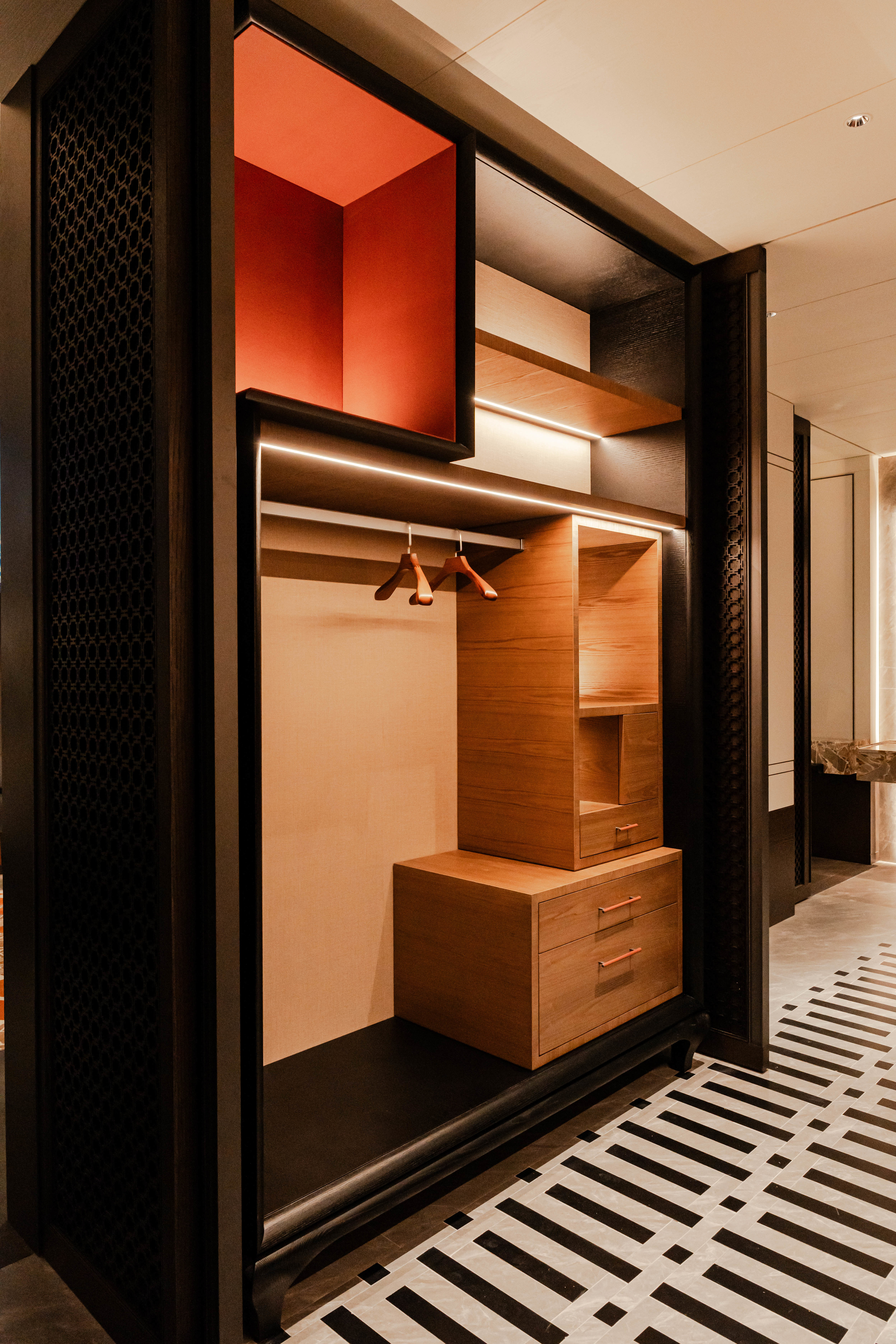 Bedroom walk-in closet, custom-made wardrobe design, wooden wardrobe